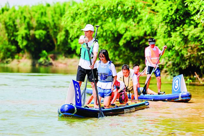 以“生态+非遗”为核心特色,串联起良井、平潭、永湖等镇街的生态资源与文化瑰宝。在走廊内的亚维浓生态园、怀安原乡生态旅游景区,游客们可提着篮子钻进果园,亲手摘下成熟的葡萄、火龙果,感受丰收的喜悦;黄洞水库、梁化河等水域资源被充分利用,除了平潭镇的桨板、骑行活动,良井镇在黄洞水库推出乘坐背包船、独木舟等休闲项目,满足不同游客的需求。