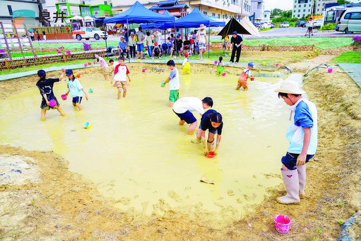 孩子们在良井抓泥鳅,玩得不亦乐乎。