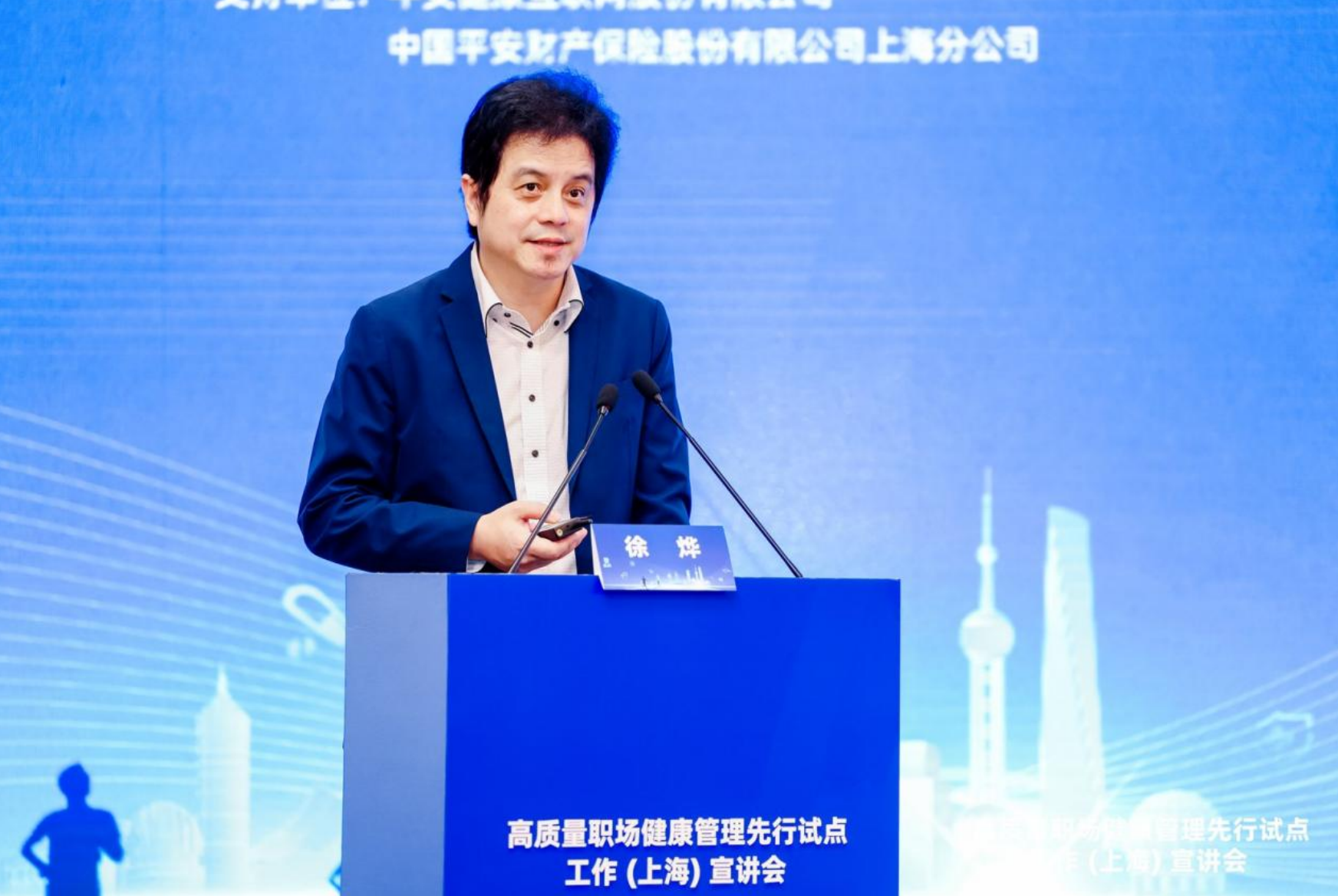 全国防控重大慢病创新融合试点项目管理委员会执行组负责人、高质量职场健康管理先行试点工作委员会执行组组长徐烨主任作《高质量职场健康管理先行试点落地实施方案》报告股点网